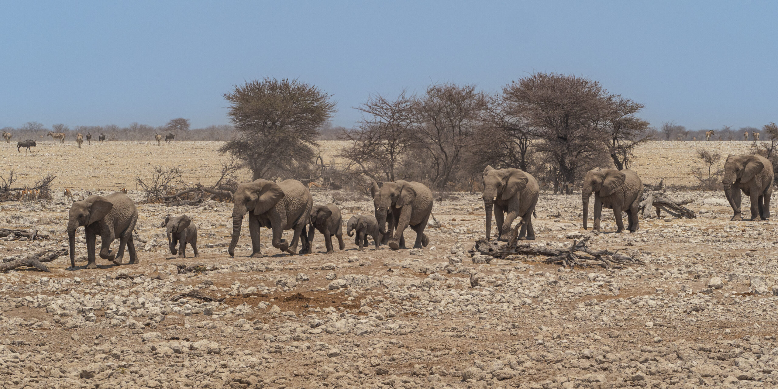 Enjoy full-day game drives through the park, visiting several well-known waterholes where animals gather to drink. Expect to see herds of springbok, zebra, impala, gemsbok, giraffe, elephant, and possibly predators such as lions and hyenas. A highlight of the day is the Etosha Pan, a vast white salt flat spanning over 5,000 km², known as the “place of dry water.” The mirage-filled horizon and the contrast of wildlife against the glistening expanse make it one of Namibia’s most iconic sights.