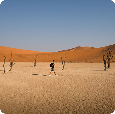 Start the day early to catch the sunrise over the Namib Desert, entering Sesriem Gate as the first light casts soft golden hues across the dunes. In the cool of the morning, take a walk through the desert with the chance to spot gemsbok, springbok, and ostrich.
