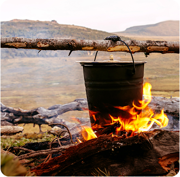 Midday offers time to rest beside a river, where you can cool off with a swim before continuing your journey. In the evening, gather around the fire for dinner and your fire watch shift, a peaceful and reflective experience under the stars.